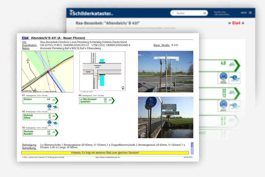 Die Standortfotos werden so aufgenommen, dass der Schilderstandort und die Ausrichtung der Schilder genau zu erkennen sind. Diese Funktion ist bei der Abstimmung der Standorte als auch bei der Geländearbeit sehr hilfreich.