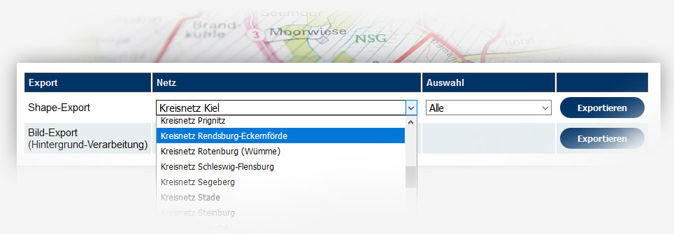 Für das Arbeiten mit den stets aktuellsten Informationen können die Daten als Shapefile (ESRI-ArcGIS) und GeoJSON (QGIS) exportiert werden.
