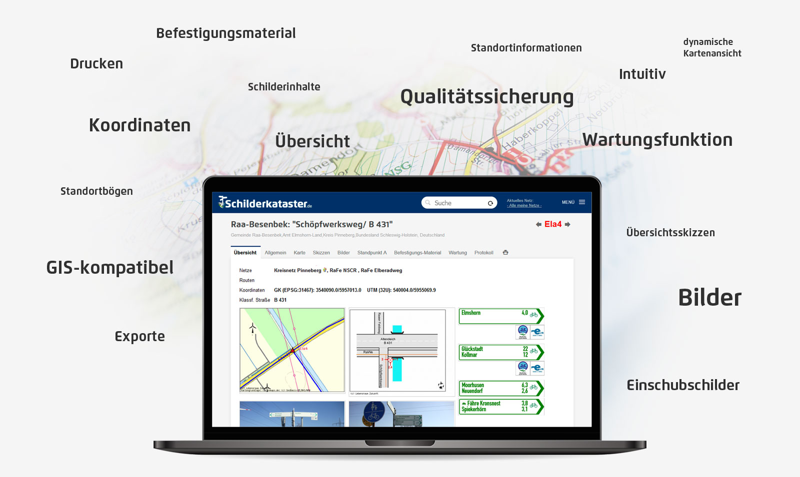 Das digitale Schilderkataster bietet eine sehr komfortable Verwaltung aller standortbezogenen Daten.